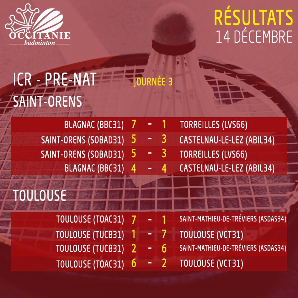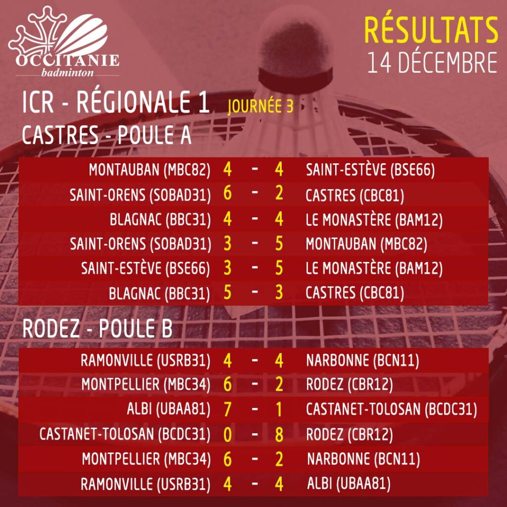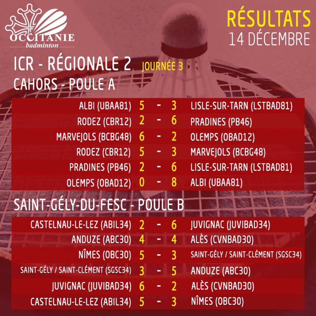 ICR – J3 – Les résultats de ce dimanche 14 décembre