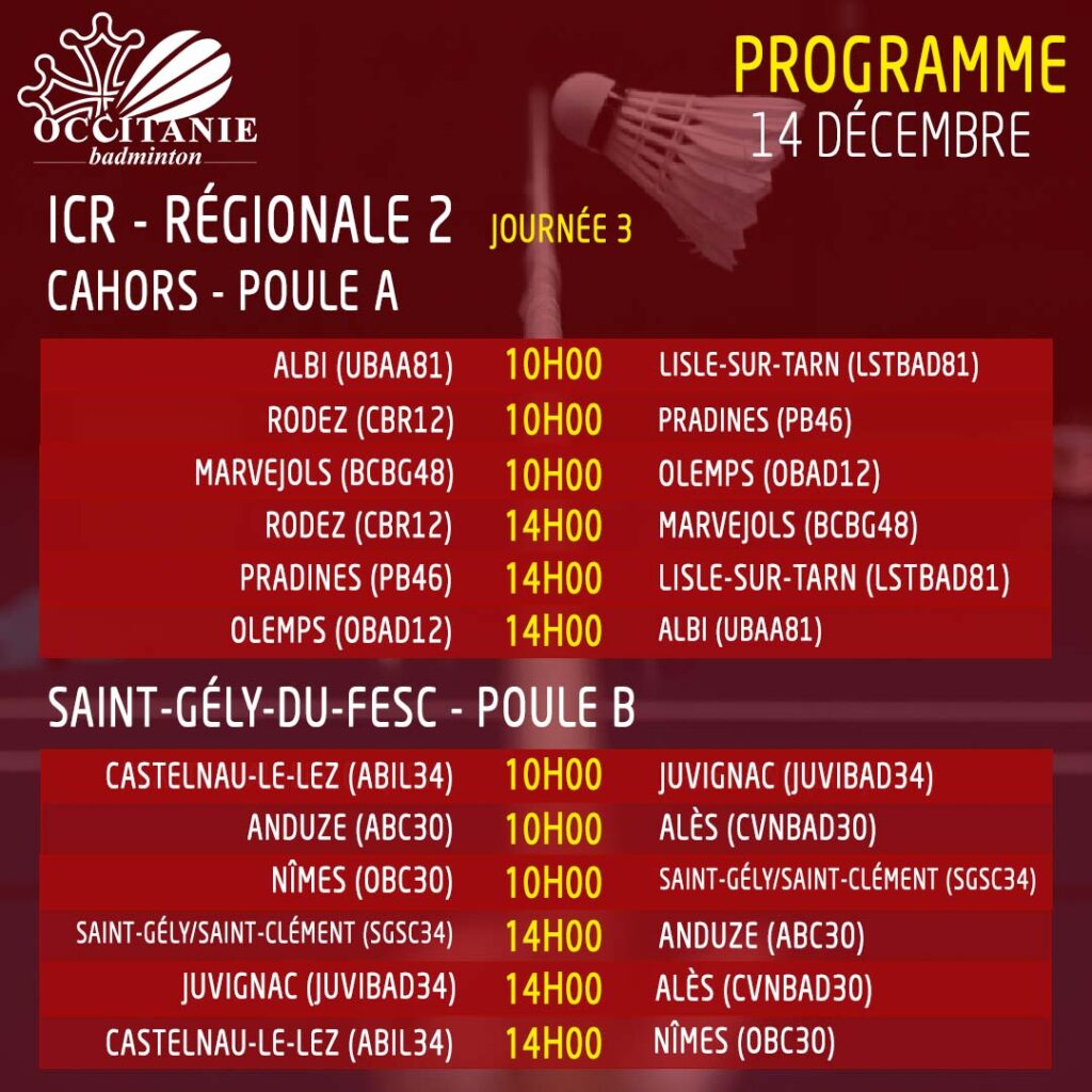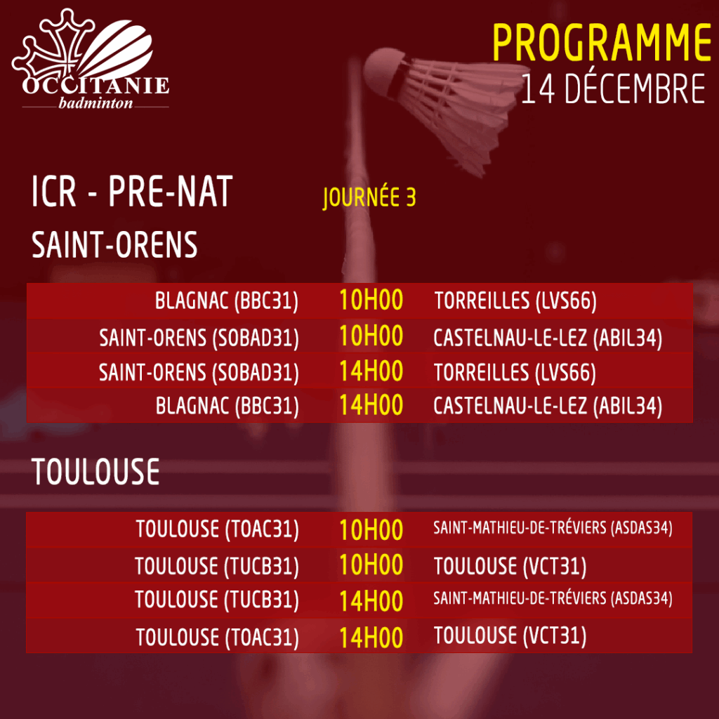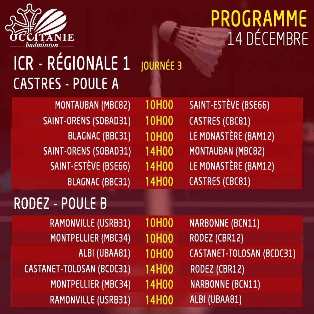 Le programme du week-end – ICR – J3 Published by Charlène Palat 28 novembre 2025 Découvrez le programme de la journée du 14 décembre du côté des ICR.