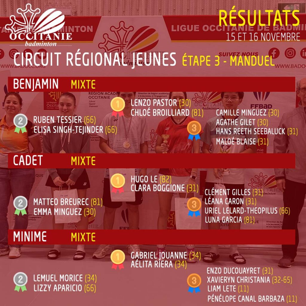 La troisième étape du CiRJ3 se déroulait ce week-end, du côté de Manduel. Découvrez les podiums des jeunes occitans.